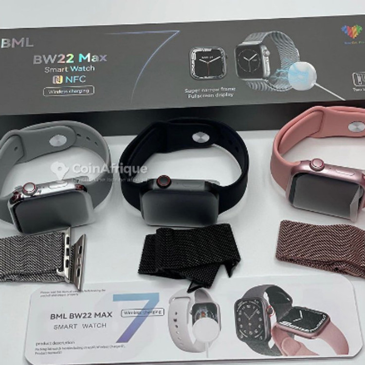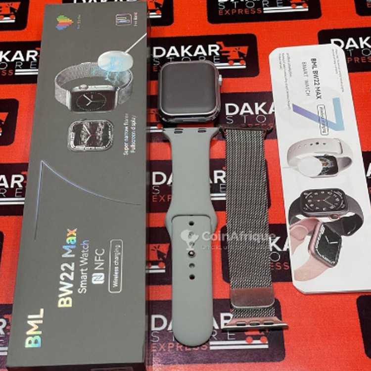 ساعت هوشمند BW22 Max دارای صفحه نمایش بزرگ 2.02 اینچی از نوع IPS و فول صفحه با کیفیت بسیار عالی انتظارات شما را از یک ساعت هوشمند کاملا برآورده می کند . از امکانات این ساعت هوشمند می توان به حسگر ضربان قلب ، ژیروسکوپ ، سنجش میزان اکسیژن خون ، فشار خون ، شارژر وایرلس و امکانات متنوع ورزشی از جمله هشدار عدم تحرک ، هشدار نوشیدن آب ، گام شمار و غیره اشاره کرد . بند این ساعت از جنس سیلیکون بسیار نرم و بادوام می باشد . ساعت هوشمند BW22 Max دارای گواهی IP68 بوده که به این معنی است که با خیال راحت می توانید در روز های بارانی و همچنین هنگام شستن دست ها از آن استفاده کنید و نگران نفوذ آب به داخل آن نباشید . با ساعت هوشمند BW22 Max می توانید به گوشی خود متصل شده و تماس بگیرید . باتری با ظرفیت 350 میلی آمپر ساعت ، بین 3 تا 5 روز و در استفاده کم تا 7 روز دوام می آورد . با اسکن بارکد روی دفترچه و نصب برنامه wear pro ، می توانید به مجموعه ای از والپیپر های بسیار باکیفیت و برنامه های متنوع دسترسی داشته باشید . ساعت C7 Max شبیه ترین ساعت به اپل واچ سری 8 در سایز 45 میلی متر است . این ساعت از قابلیت اسپلیت اسکرین برای کار به صورت همزمان با چند اپلیکیشن بهره مند است و از لحاظ کارایی شباهت بسیار زیادی به اپل واچ سری8 دارد. همچنین پشتیبانی از زبان فارسی حتی در منو و قابلیت اضافه کردن انواع واچ فیس و قابلیت بی صدا شدن ، مجیک باتون با دکمه چرخشی برای تعویض والپیپر ها ، تنها بخش کوچکی از امکانات ساعت هوشمند BW22 Max می باشد .