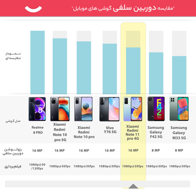 دوربین سلفی : دارای حسگری با رزولوشن 16 مگاپیکسل، دریچهی دیافراگم f/2.5، ثبت تصاویر با پیکسلهایی به سایز 1.0 میکرومتر (1.0µm Pixel Size) و سایز سنسور 1/3.06 اینچ ( 1/3.06 :Sensor Size )