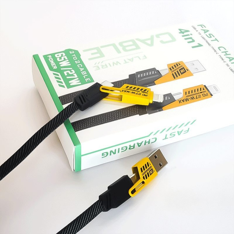 این کابل چندکاره، با پشتیبانی از شارژ Power Delivery تا 27 وات، قادر است آیفون و سایر دستگاههای دارای پورت لایتنینگ یا USB‑C را با سرعت بالا شارژ کند. کانکتورهای آن شامل USB‑A، USB‑C و Lightning میشود و امکان انتقال داده (480Mbps) را فراهم میآورد؛ با طراحی فلت و طول 1.2 متری، برای استفاده رومیزی مناسب است و فضای شما را اشغال نمیکند. جنس برزنتی روی کابل مقاومت در برابر گره خوردن و پیچیدگی را بالا برده و مناسب استفاده روزمره است.