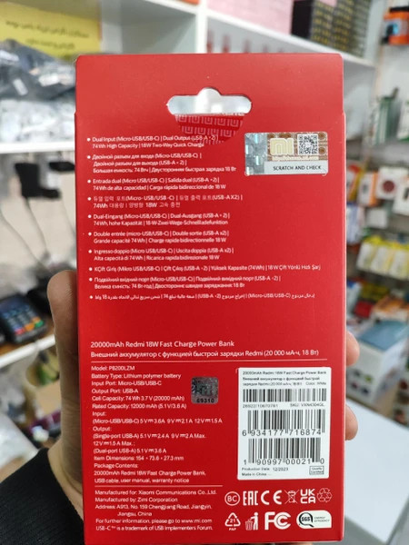 پاوربانک شیائومی اصل6 ماه گارانتی مدل Redmi PB200LZM Global + هولوگرام شیائومی روی جعبه و بدنه و پلمپ شیائومی