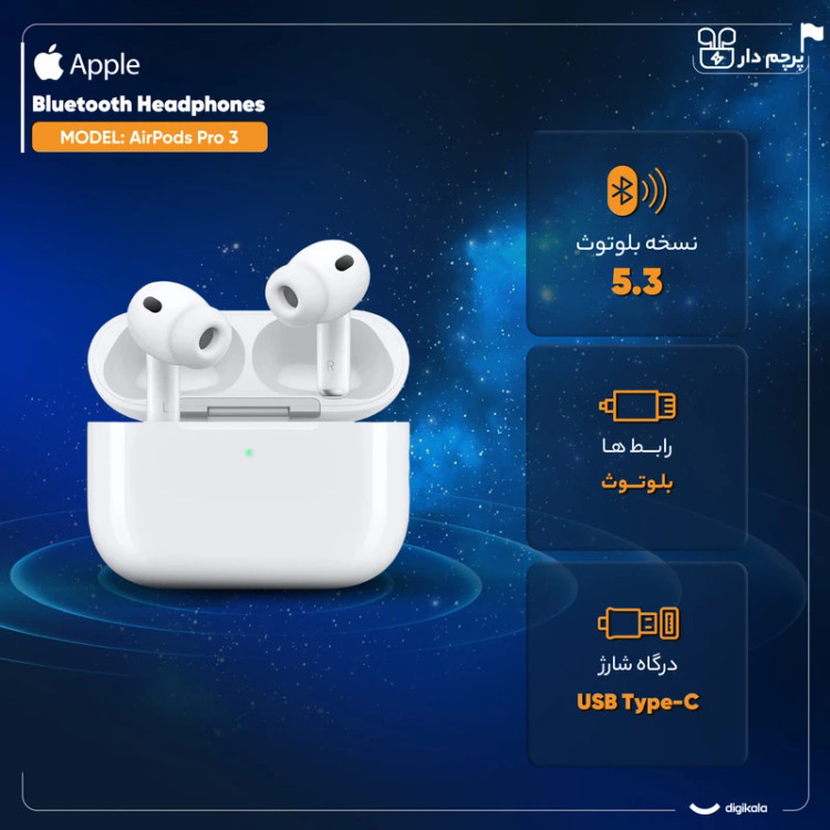 AIRPOD PRO 3 ANC هم از طریق پورت Type‑C و هم با شارژر وایرلس قابل شارژ است و این انعطافپذیری، استفاده روزمره را سادهتر و مدرنتر میکند.